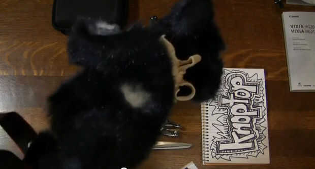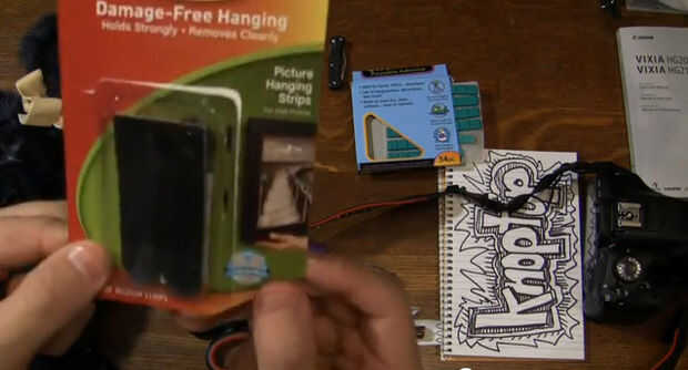Básicamente estamos perforando un agujero en cada lado de la cinta de velcro para permitir que el micrófono de la cámara a estar expuesto. Una vez que la configuración de agujeros, línea de la tira de velcro en la cámara, cortado a la medida y pegarlo en tu cámara! Luego tomar un animal de peluche furry y cortar una pequeña sección de la piel y pegue al otro lado de la pieza superior de velcro.