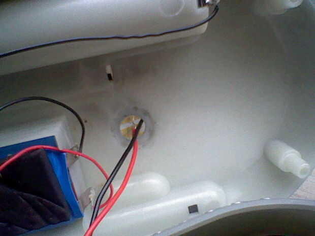 puede perforar un agujero, pero no necesito, ya había un agujero en el caso la imagen principal muestra también el condensador donde habría conectado You ' r los cables si no tienes una lámpara.