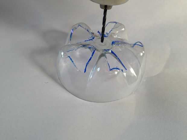 Corte orificios en un lado de cada canto (el mismo lado en cada uno). Esto le dará una forma de hélice según las fotos.