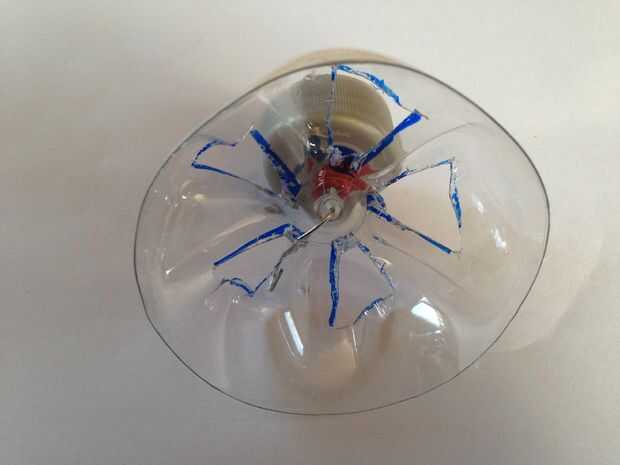 A continuación doblar el clip de papel y alimentación a través de la tapa y la hélice como se muestra en las fotos. Terminé usando un cordón entre la hélice y la tapa para reducir la fricción.