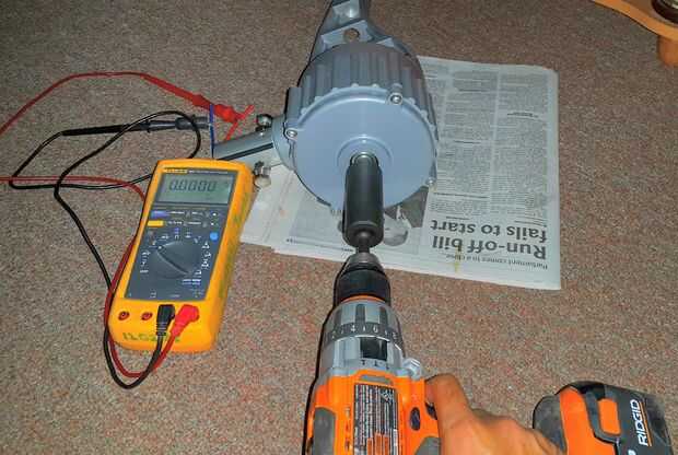 Usé mi taladro inalámbrico y un zócalo a la tuerca. En el engranaje más bajo tengo 22 voltios dc. En el engranaje más alto tengo 83 voltios dc. Pma de turbina de viento normalmente están conectados en estrella y esto explica tan enorme la diferencia de voltajes para los rangos de rpm. Un devanado delta conectado simplemente no puede producir que una tensión alta oscilación sin embargo ambas estrella y delta le da la misma potencia para el mismo pma.