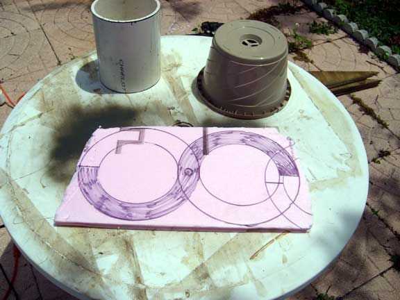 La Vertical Axis Wind turbina (VAWT) se compone de muchas capas idénticas de madera contrachapada. Primero, corte una plantilla de espuma y utiliza para marcar madera de desecho para el corte.