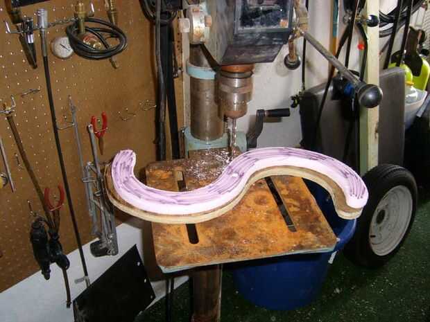 Usé una 1/4 de pulgada broca ya que utilicé stock de hilo de rosca de 1/4 pulgadas para el eje. Sin embargo, en retrospectiva pude han utilizado una broca más grande (1/2 pulgada o menos) para el mismo eje puesto que las capas están comprimidas junto con las tuercas del extremo. Esto permitiría una más fácil realineación del eje había mal perforé mi agujero para comenzar con.