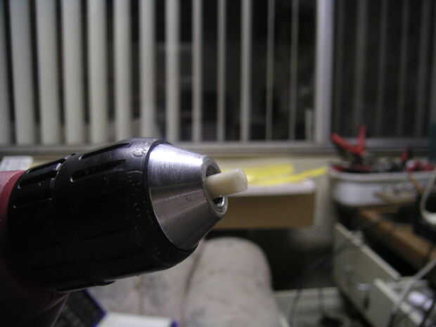 Ahora que la presentación se realiza, para mantener dos paso en algún lugar la bobina de alambre que gira libremente, usted está a punto de desconectar el cable de relé antiguo o el cable del reloj. Es necesario asegurar el otro extremo del alambre en cada extremo de la vela, por ejemplo con cinta scotch o sólo en la punta de la vela. Generalmente hacen un nudo dentro de la anterior fuera presentado y asegure el extremo del alambre a la vela, asegurándose de que no será demasiado corto para mi aplicación. Ahora puede hacer unas cuantas rondas del alambre con el taladro (poner en la velocidad más baja) y cuando tienen 10-20 rondas, poner una gota de pegamento de CA (también conocido como superglue), y continuar enrollar la bobina con el ajuste de baja velocidad en el taladro. Hacen sin embargo muchas rondas que necesita asegurarse de que el pegamento está distribuyendo aún dentro de la anterior y que la bobina tiene suficiente pegamento.