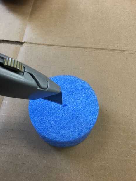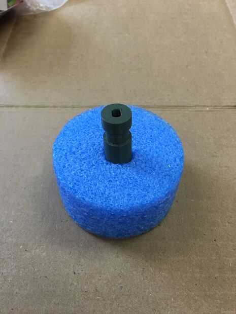 Yo comentar aquí el centro de los discos de espuma azul y corte un agujero en ellos de los brazos de plástico. Desde aquí pienso montar los brazos en el motor.
