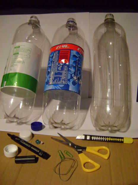 -una botella de plástico (tamaño de 2 o 3 litros es ideal; uno con recto liso caras, no saltones o acanalada).