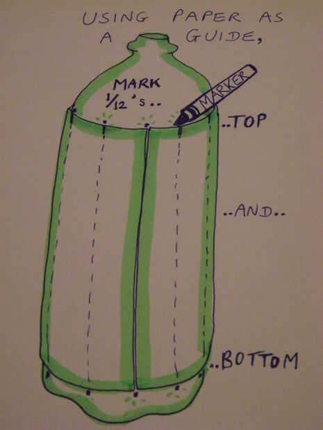 Ahora, con la botella vertical, abrigo de la guía de papel alrededor de la botella una vez más y firmemente (o grabar en su lugar), utilizar un rotulador o un lápiz para hacer puntos en cada 12 de la manera alrededor de... superior e inferior del papel (alineado derecha!). Esto puede ser más fácil para dos personas para hacer... una espera, una marca.