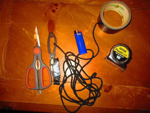 Paracord (usé unos 9 pies y había dejado un montón, pero es necesario añadir más dependiendo de la manija del cuchillo).