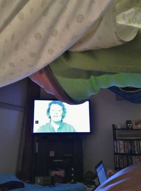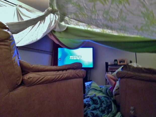 ** El interior siempre se ve mucho más frío que el exterior, esta es otra razón para colocar objetos buscados dentro de su área de fortaleza antes de empezar a cadena de modo que usted puede sentarse y disfrutar de su fortaleza sin tener que hacer espacio para actividades dentro. En nuestro caso tuvimos un agradable 47" TV como la pieza central. **