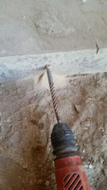 1. taladro 5" hacia adentro en la pared con una 1/2" broca de martillo.