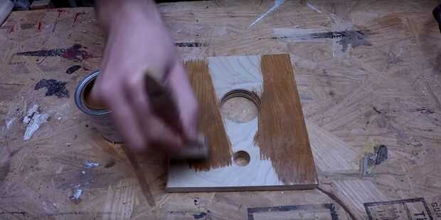 Una vez que las piezas de madera, les limpie y aplique una capa de tinte o sellador. Si usas tinte, asegúrese y limpie el exceso con un trapo limpio porque mancha agrupada se seca escamosa.
