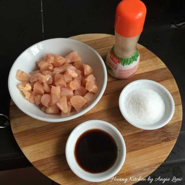 Paso 2: Marinar la carne en rodajas con azúcar, salsa de soja y pimienta blanca al menos 30 minutos a una hora.