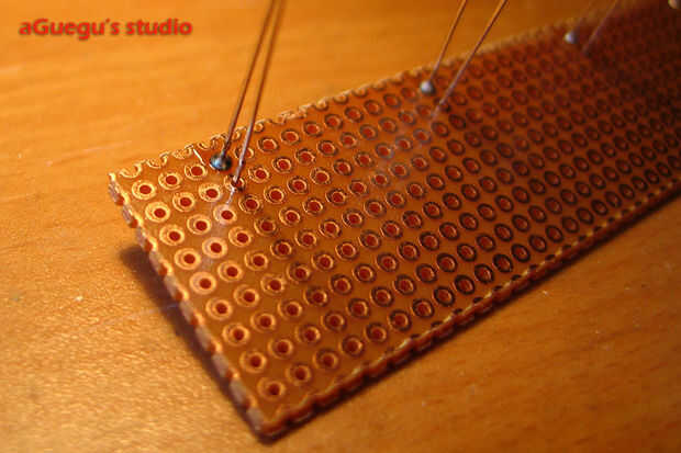 Consejo: Solo soldar un perno al principio. Empuje la cabeza de LED con el pulgar y al mismo tiempo, el estaño se funden por la electrónica de hierro. De esta manera, usted puede soldado el LED conectado a junta firmemente. Y entonces usted podría soldado el otro pasador.