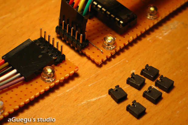 Conexión entre ellos es simple. fácilmente puede conectarlos por cabezas de puente. necesita 6 de ellas para hacer una conexión.