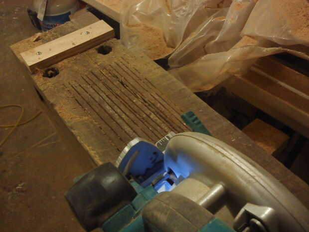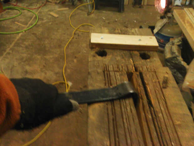 Después de conseguir el rayo con el tamaño correcto (Nota: yo no he lijado para terminar), entonces empecé a preparar la chimenea para instalar futuras. Después de hacer mi investigación, encontré que vaciando la parte posterior de mi rayo para más tarde deslizarse sobre un Cala asegurada a la piedra era la mejor opción para mí. Con el fin de tomar una porción decente de la parte posterior de este rayo usé una sierra circular y kerfed la viga. Entonces cincele los escombros restantes en el agujero. Atornillar un tablero en cada extremo para proporcionar una parada para mi sierra. Esto me impidió tener que pensar cuándo parar, y también me impidió torcer mi sierra. Torcer la hoja en esta aplicación sin duda podría causar retroceso detrás de la sierra. Entonces tomé un sonicrafter (herramienta oscilante) para limpiar los extremos. Tomó un poco de tiempo, pero un piso bar fue lo suficiente como para romper algunos de kerfed material y luego utilizar un cincel para limpiar el agujero. En este caso, el espacio hueco era 2 1/4" de profundidad. He dejado 2" de material en la viga superior para asegurarse de que tenía suficiente carne para atornillar la repisa en la Cala una vez instalada. Entonces dispone de una cala en el espacio para asegurarse de que se sentó uniformemente y salió en combatirlo. Otro más lateral a este método fue que redujo el peso de la repisa de sí mismo. Había pensado en tomar una pala grande para perforar más madera para aligerar aún más, pero con mi viga siendo sólo 6' de largo era lo suficientemente ligero.