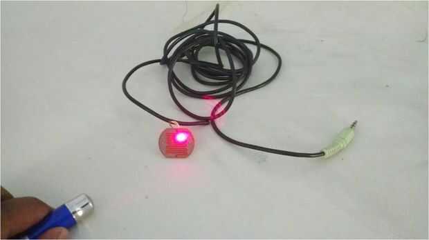 5. Soldar el cable de tierra del cable de audio a uno de los pines de la fotocélula. Conecte el otro cable de dos a uno de los pines. cable a tierra es generalmente color cobre para que se pueda distinguir entre ellos.