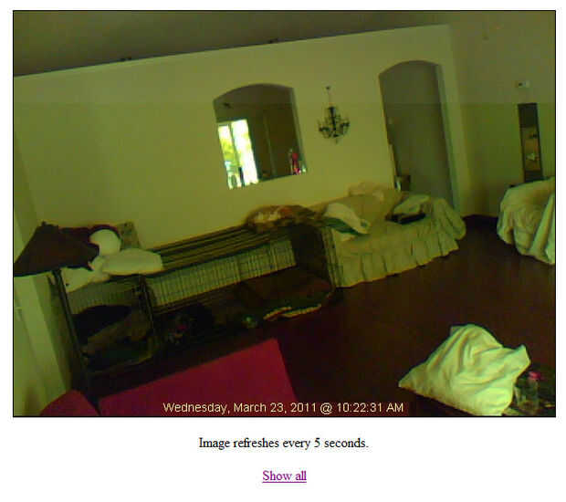 La imagen adjuntada es una muestra de lo que espero ver cuando tenga la cámara establecer, una casa desordenada, perezosos animales y zombies ni ladrones.