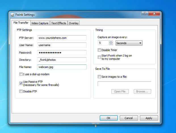 • En el área de "FTP Server", escriba el nombre de su sitio Web. Ejemplo: www.yoursitehere.com