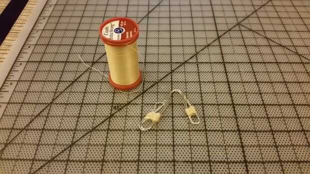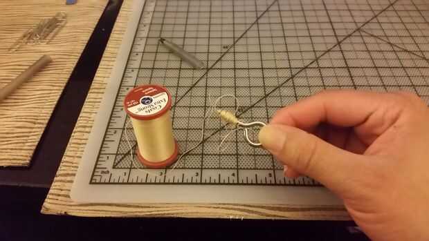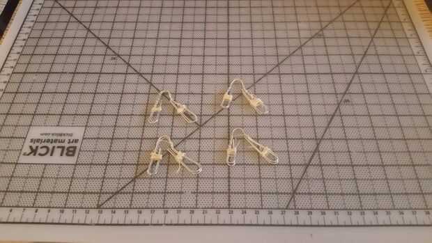 A continuación tome sus sujetapapeles enderezados y abrigo 2 de ellos juntos, a través de los bits paralelo, encima/sobre los lazos creados previamente. Envolviéndolos les dará una mejor superficie para el pegamento caliente adherir al montar los ganchos... Hice la curva adicional en la mía porque usaba cadena en este paso en lugar de cinta.