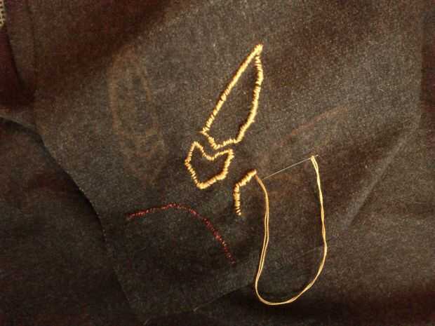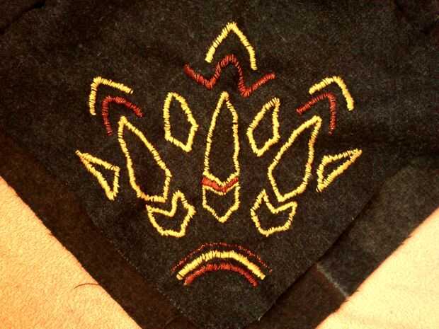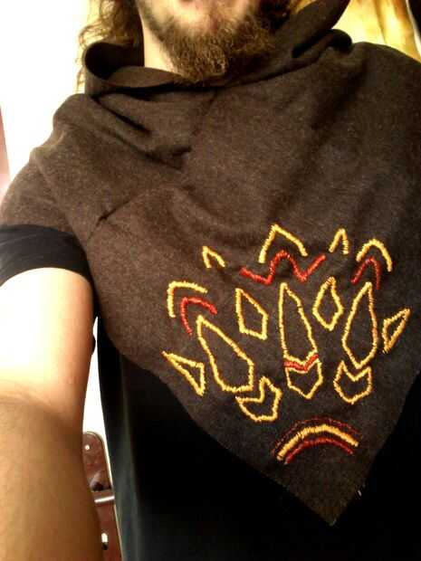 Hice algunos emroidery de estilo sun de Rohan, pero estaba en una presión de tiempo porque necesitaba mi campana muy pronto para una batalla, así que no es tan épica como quisiera ser :D (Aunque me llevó sobre un medio día para hacerlo: D)