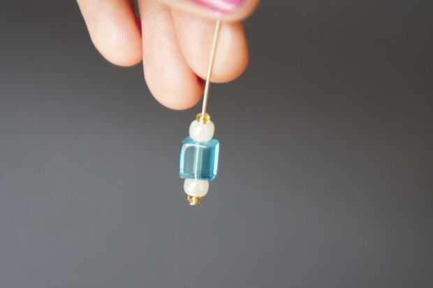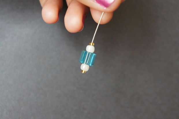 1) tomar un alfiler de cabeza y colocar los granos en un patrón desea y asegurar hacer un lazo.