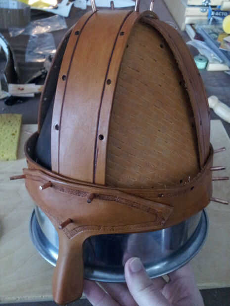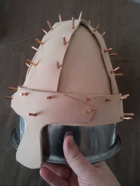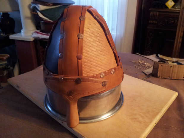 Vale, así que no voy en un raid, pero estoy pensando en usarlo como parte de mi disfraz de Halloween de arquero vikingo. El casco que vamos a hacer se basa en un diseño clásico de Norman, con un total de 9 piezas de cuero que se utiliza para construir el casco. También se hacer algunos estampado decorativo y útiles en los paneles, vendas y protector nasal del timón.