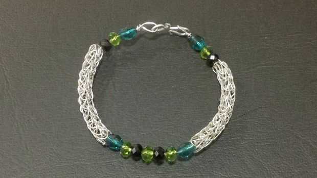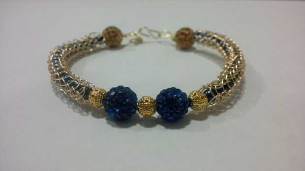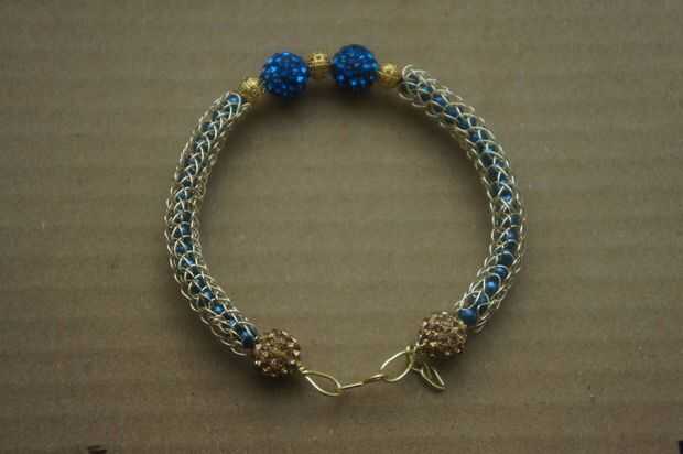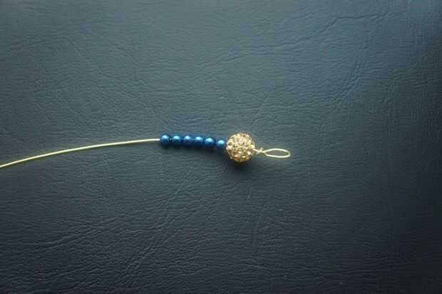 5) tome un alambre de calibre más grueso, hacer un lazo en un extremo en el siguiente inserto primer patrón que los granos luego tejidos alambre y algunas perlas más.