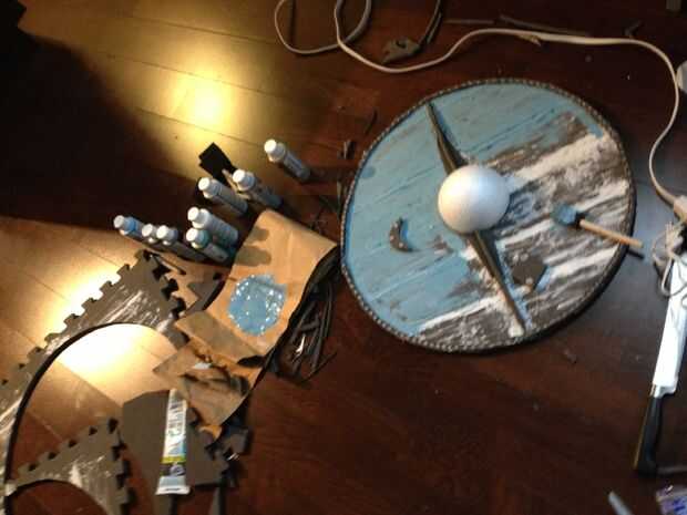 9) pegar los adornos de bolas y espuma al escudo