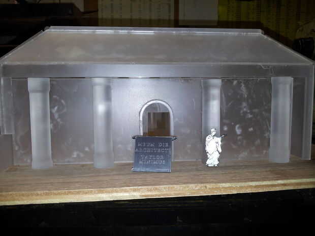 Detalles finales fue una placa y una figura de la escala. La placa dice "Meum Die architecti"