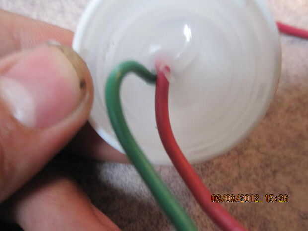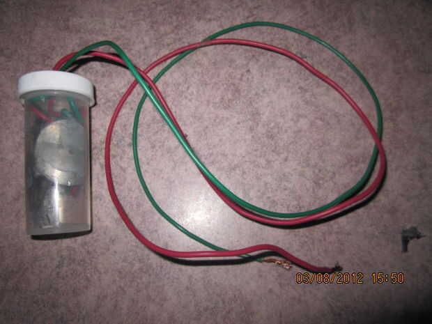 taladrar un agujero en la parte superior de la botella de píldora y tire de los cables aunque pero dejar unos 3-4 pulgadas de alambre entre la botella y la tapa del pegamento caliente Junta los alambres en lugar llenarlo de vinagre y realizar la prueba