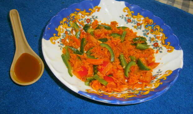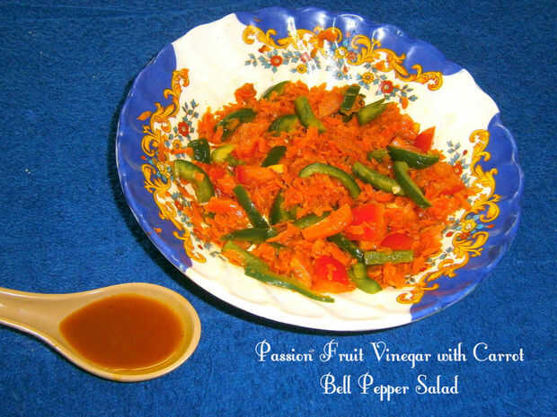 Sólo encontré con vinagre con sabor a frutas y quedó fascinado por el concepto. Fruta de la pasión fue mi primera opción ya que tiene un sabor único. el sabor amargo es justo lo que me gustaría para una ensalada. Por lo tanto intenté hacer vinagre de fruta de la pasión desde el principio y entonces había agregado a mi ensalada de pimiento zanahoria. Debo decirles, probado tan tropical. Perfecto para el calor del verano.