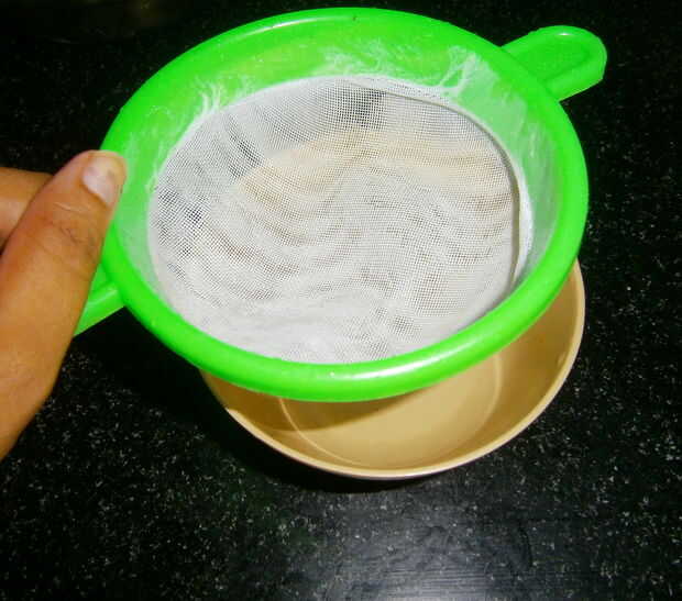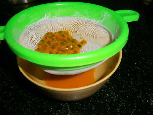 Use un colador para quitar las semillas de la pulpa. Ligeramente puré para arriba con un tenedor para que suelte más jugo de la pulpa.