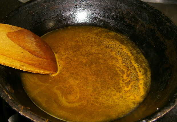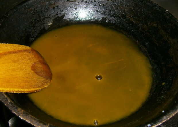 Llevar lentamente el vinagre a un hervor suave, revolviendo de vez en cuando con una cuchara de madera. Agregar la miel en esta etapa. Hervir suavemente y constantemente durante 10 minutos. Sacar el calor.