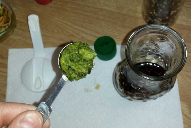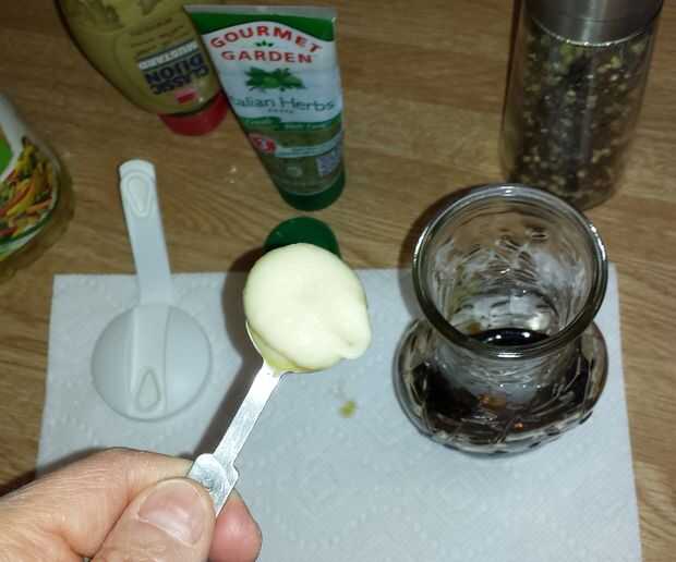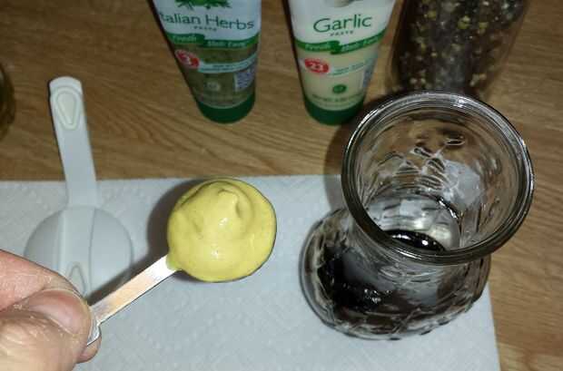 Luego agregar una cucharadita colmada de cada uno de pasta de ajo, mostaza de Dijon y hierbas frescas. De amontonamiento!