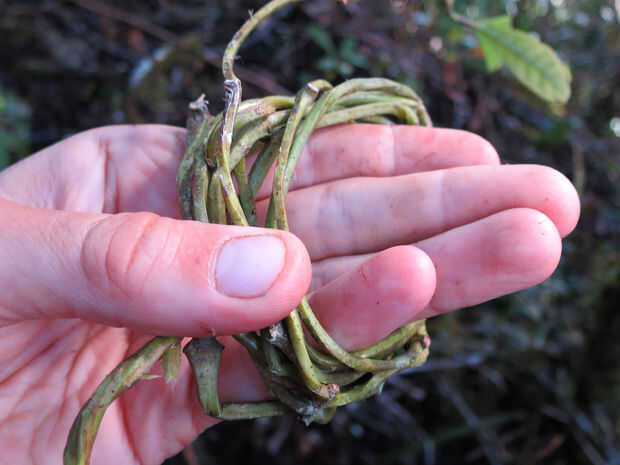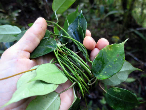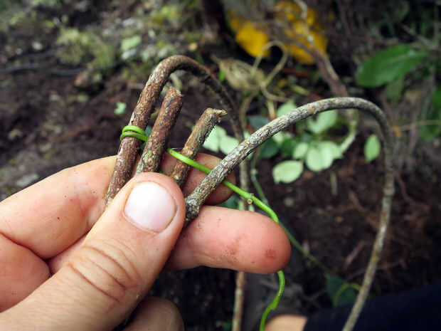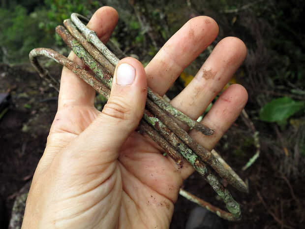 Dar un paseo por la selva y no olvide llevar su cuchillo. Mirar arriba y abajo de los troncos de los árboles, en el suelo y para la vid en el aire, especialmente en lo alto. Puede tomar algo de paciencia, una vez encontrando una vid, para desentrañarlo y cortar para obtener una buena cantidad de longitud. Así que disfrutar del proceso. No hay apuro. Para el montaje de cabeza te recomiendo que recoge los siguientes tipos de cepas: