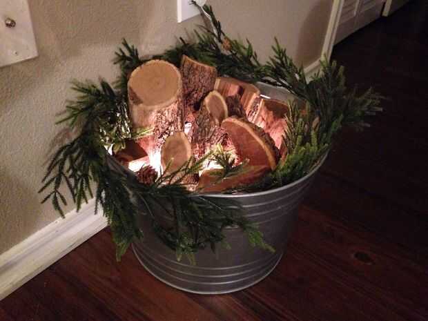 Una vez que se arregla su madera la forma que quieras, añadir tu guirnalda. Yo en había escondido bajo unos pedazos de madera como que envuelve el borde de la cubeta. Esto debe mantener en su lugar (a menos que tenga un niño pequeño o un gato curioso en la casa.)
