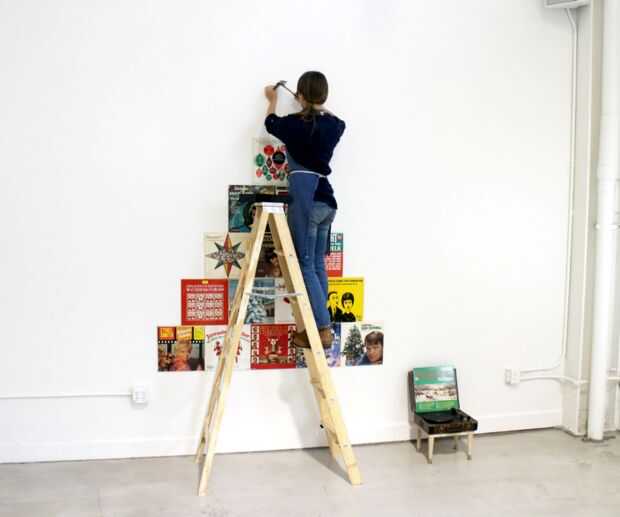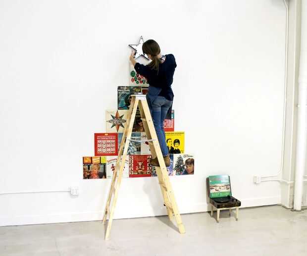 Mueva su tocadiscos y el taburete de al lado y establecer una escala para que puedan alcanzar sobre el registro superior. Encontrar el lugar deseado para su estrella de la carpa y usar un pequeño clavo y martillo para montarlo.