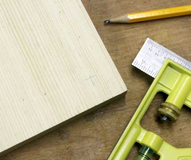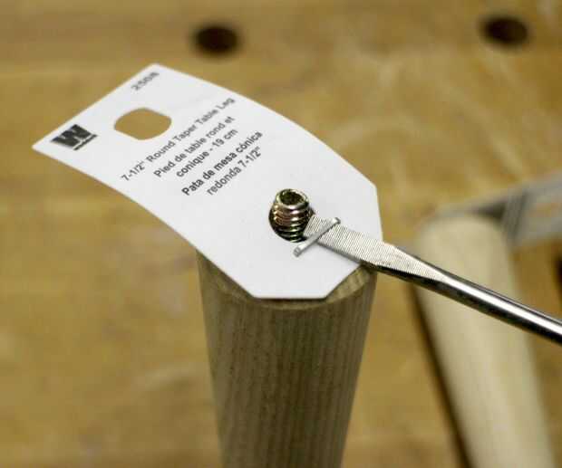 La marca que taladra los agujeros para las patas con una escuadra de carpintero. Quería que mis piernas cerca a las esquinas como sea posible sin pegarse hacia fuera, tan medido en 3/4" de cada lado *.
