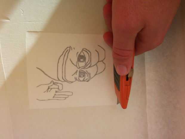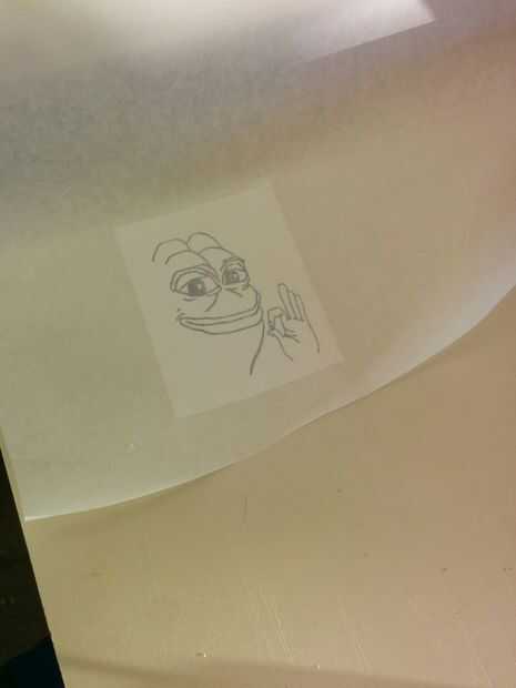 Una vez que se ha cortado el vinilo, utilice un cuchillo para cortar de la fresa. Luego, cortar por lo que hay un poco de una frontera entre los cortes y el borde. A continuación, utilice una herramienta puntiaguda para quitar el vinilo que no se debe aplicar. Una manera fácil de determinar lo que debe eliminarse es mirar los trazados vectoriales. Una vez que se ha eliminado todo el vinilo extra, tenemos que poner la cinta de la transferencia sobre el vinilo. Asegúrese de que cubre el meme todo húmedo y luego presionar uniformemente. Utilicé una regla para asegurarse de que cubre uniformemente toda la superficie. Luego, corte la cinta sobrante de la meme dank. Si se corta en el papel, debe ser fácil de quitar forma la tabla. Tu meme dank está ahora listo para aplicarse.