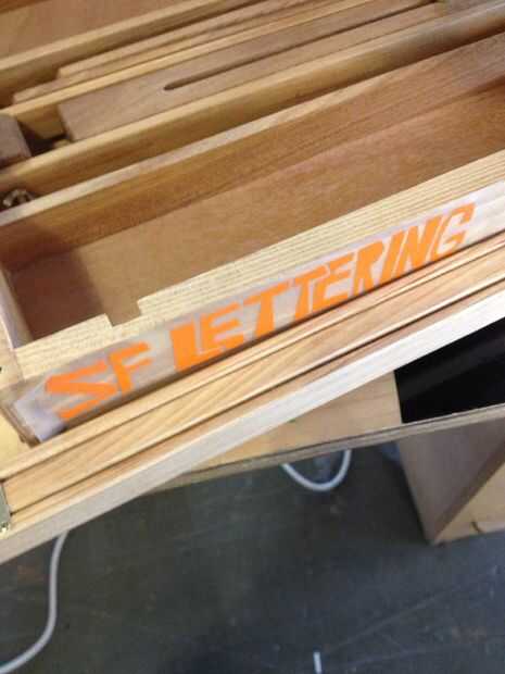 Al seleccionar un lugar para aplicar la calcomanía, asegúrese que se pegue bien usar una pieza de muestra del vinilo para probar los lugares para la adherencia. Esta ubicación tratando de aplicar una etiqueta de SFlettering de vinilo en el exterior de un caballete no se pegaron.