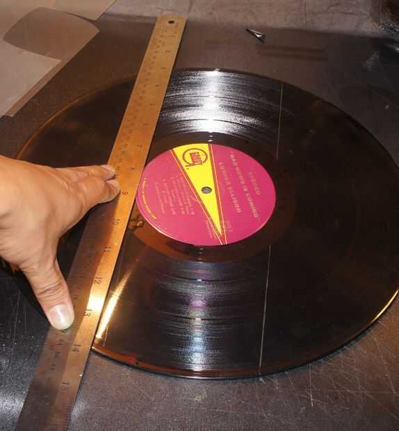 1. Trazar 2 líneas paralelas a lo largo de los lados opuestos de la etiqueta del disco.