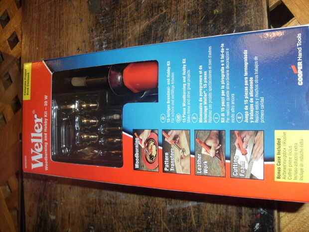 La herramienta que he descubierto que funciona es llamar un cuchillo caliente utilizado normalmente para cortar espuma y cuero según el paquete. Fue un feliz accidente que conducen a este descubrimiento, he sido con ganas de probar pirograbado para un tiempo tan recogido este kit