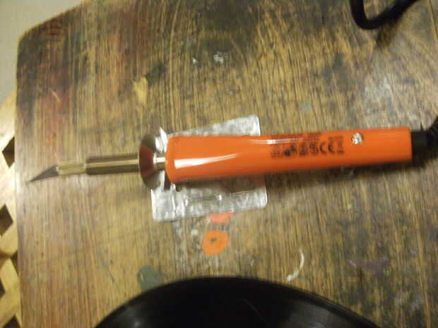 http://www.amazon.co.uk/Weller-Woodburning-and-Hobbyists-Kit/dp/B000X8I86C/ref=sr_1_2?ie=UTF8&qid=1347454707&sr=8-2 e incluyó un cuchillo caliente para que lo dio un ir. De ninguna manera es un procesos de rápida pero corta el vinilo dejando un borde liso. Encontré que podría cortar con varias pasadas de luz o un pase profundo lento. Una alternativa con obras para grandes piezas fue cortar la mitad y luego a lo largo de la línea. Usted necesita ser consciente de que hay un olor químico que desprende al cortar pero esto fue no fueron cerca tan malo como esperaba y trabajo en un área bien ventilada parecía disiparse rápidamente. El kit también tenía otros consejos ardientes que podrían utilizarse para agregar textura y detalle en el diseño.