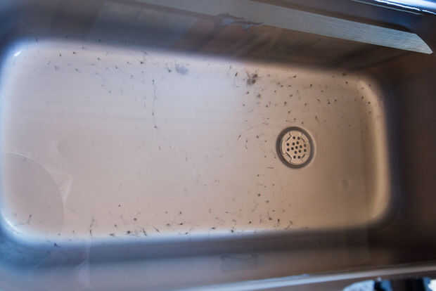 La foto muestra el depósito en el tanque después de la limpieza 27 registros. me sorprende es tanto como todos los registros habían limpiados un registro vacío limpiador antes.