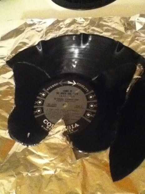 es este instructable sobre cómo hacer un tazón de fuente de un registro.Este instructable llamadas para:1. un disco de vinilo LP (u otro tamaño si quieres un plato más pequeño)2. una hoja de galleta3. un bol apto para horno que es sobre la forma y ta