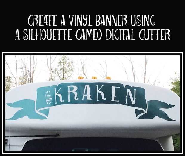 Convertir un autobús en un móvil de aventura familiar y necesita un nombre de banner en la parte delantera del vehículo. Con el vinilo de chatarra y y un camafeo de silueta, estábamos dispuestos a hacer un DIY intento.