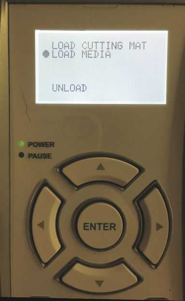 Con sus vinilos presionado contra los rodillos de guía, seleccione carga Media. La máquina se carga automáticamente.