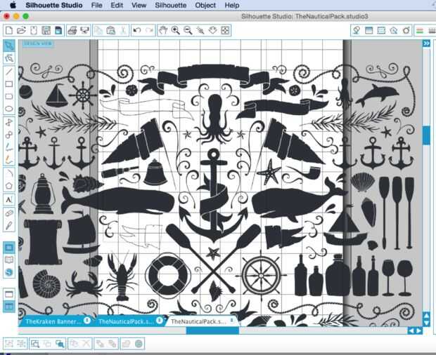 Con el archivo abierto en el estudio de la silueta, se verá algo como esto. Hay muchos diseños que no se utiliza y la bandera también debían ser aislados de lo clutter.