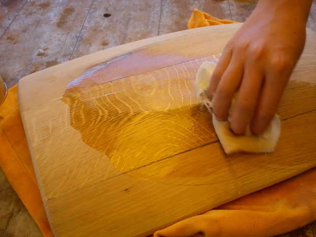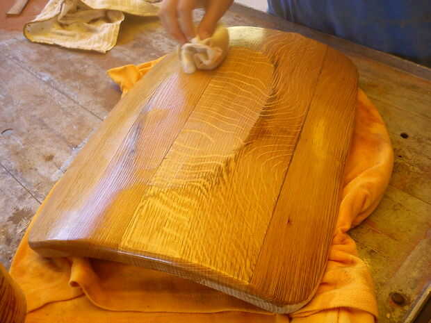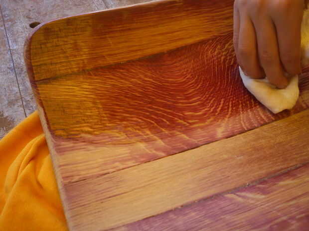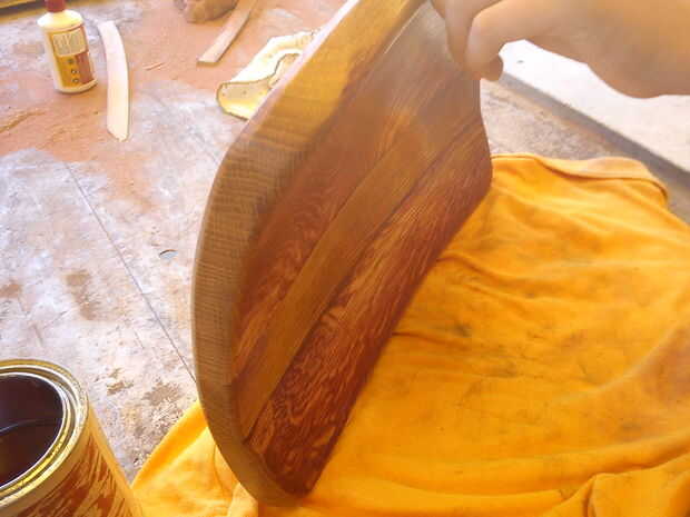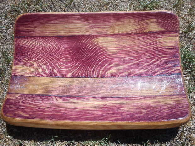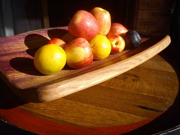 Después que lijarlo era bueno para conseguir algunos muebles aceite aceite en la madera. La mancha de vino tinta que la madera parezca muy singular y parece cambiar de color de luz diferente. El tazón de fuente también es muy tactil y todo aquel que lo ve quiere tocarlo. ¿No como frutas? podría poner sus llaves, teléfono, gafas y cartera allí.