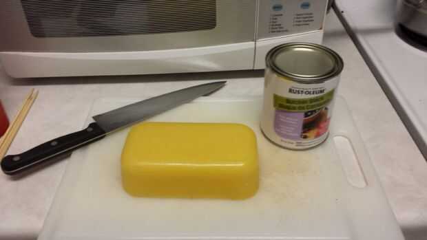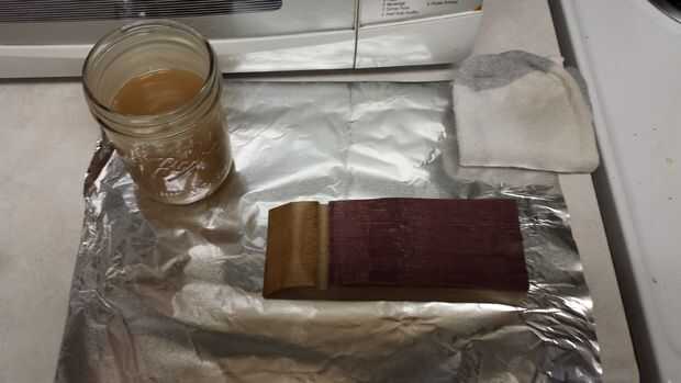 - Pásele una cantidad generosa de sellador sobre un trapo desechable (viejos calcetines funcionan bien) y dejar para secar durante unos 15 minutos.